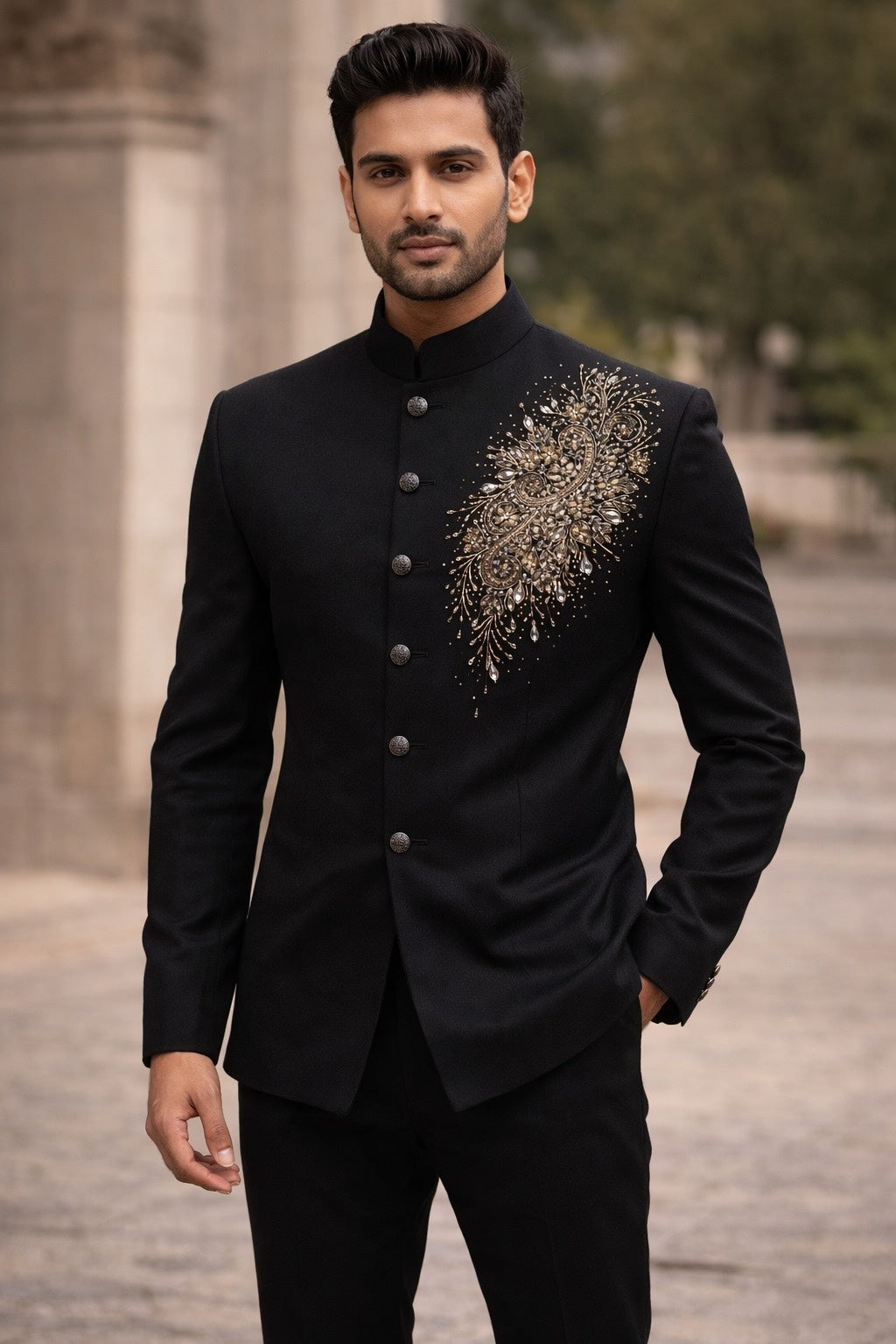 RICH BLACK JODHPURI SET WITH UNIQUE HANDWORK EMBROIDERY FOR EVERY WEDDING OCCASIONS