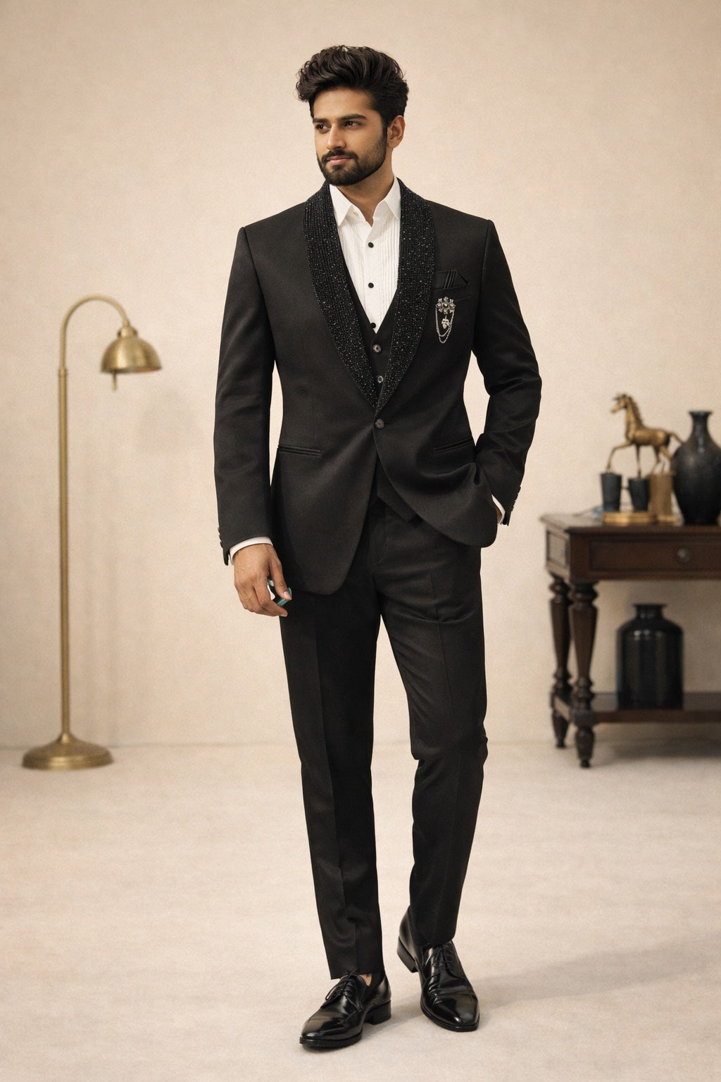 5 PC SUIT IN BLACK WITH DESIGNER NAPLE FOR WEDDING