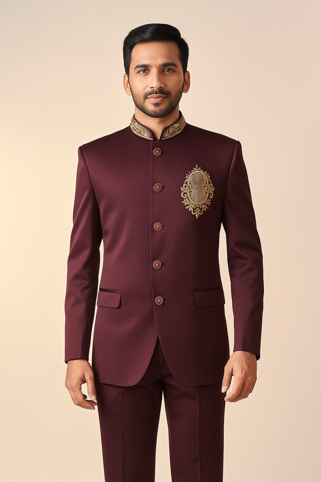WINE HUE JODHPURI SET WITH HEAVY HAND EMBROIDERY FOR EVERY WEDDING CEREMONIES