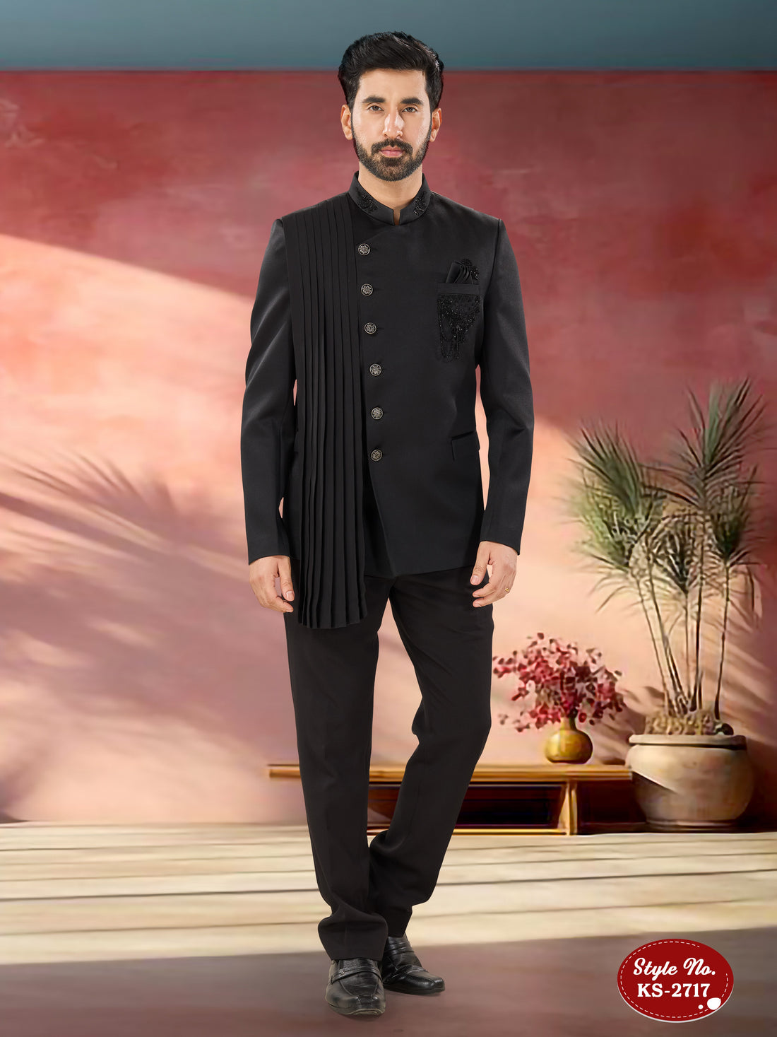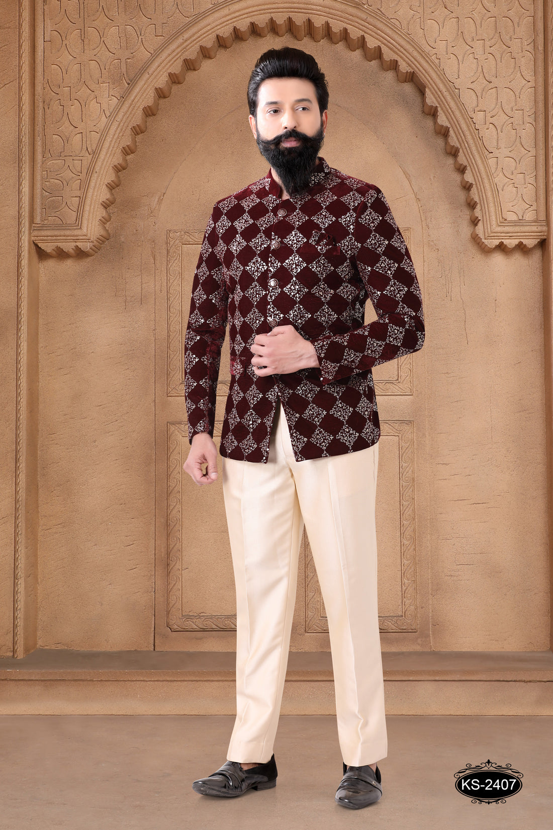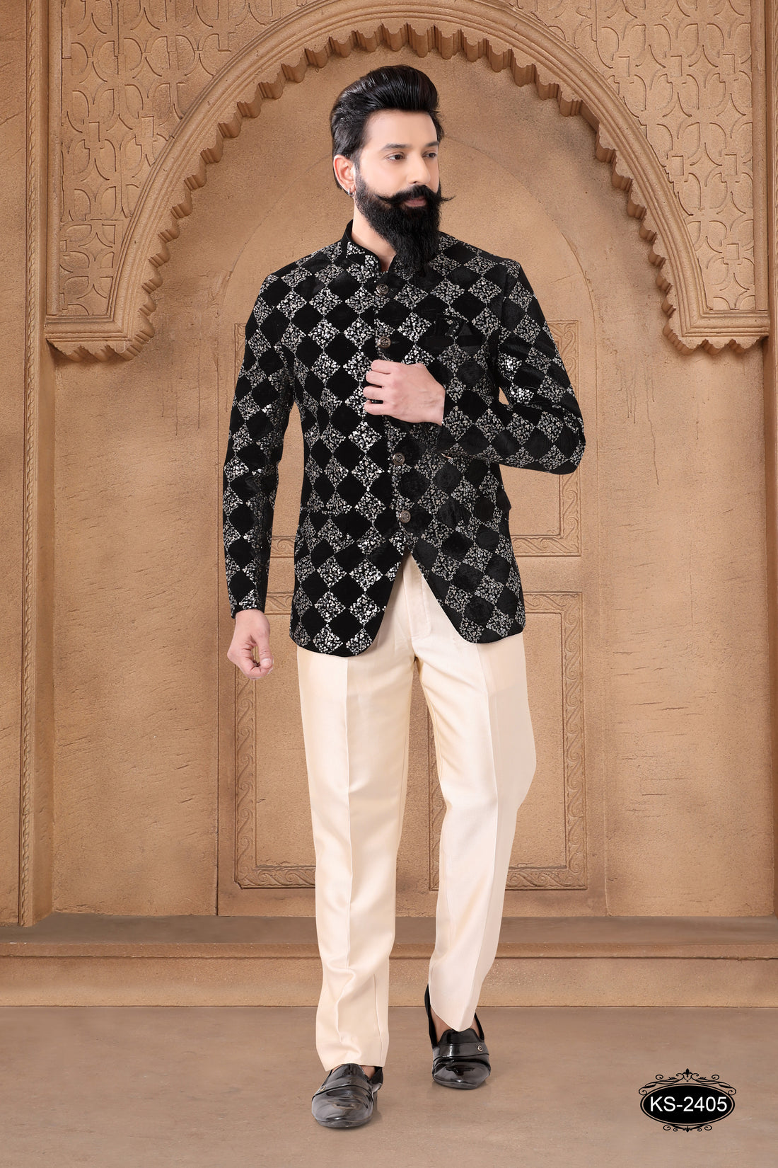 • Bandhgala Fabric : Velvet. • Work : Thread & Sequence Embroidery All-Over. • Pant...