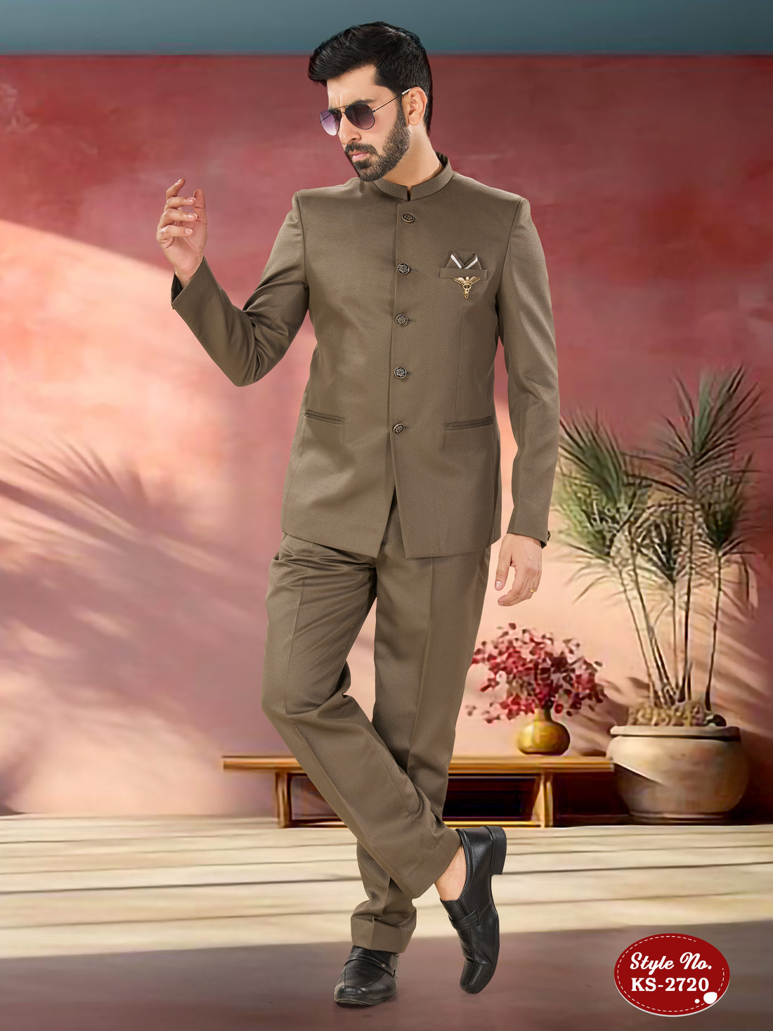 MEHANDI BROWN HUE BANDHGALA SET PERFECT FOR EVERY WEDDING CEREMONIES