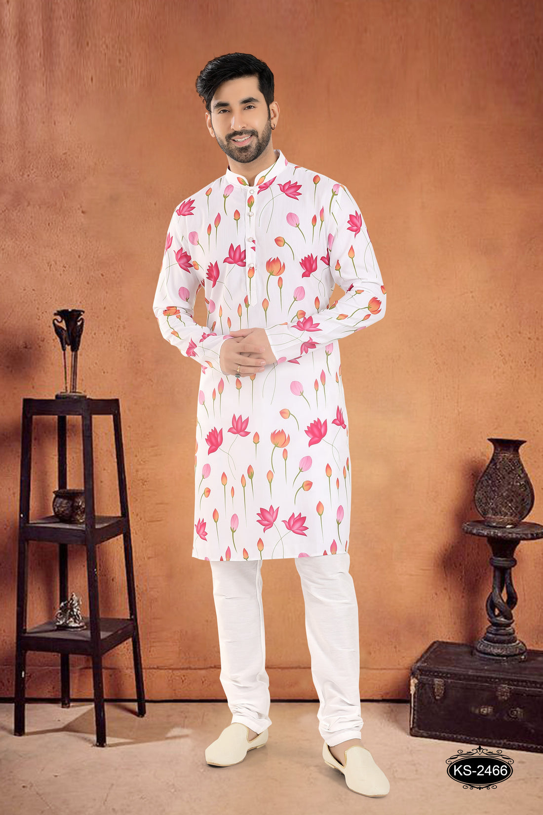 WHITE KURTA SET WITH FLORAL PRINT DESIGN ALL-OVER