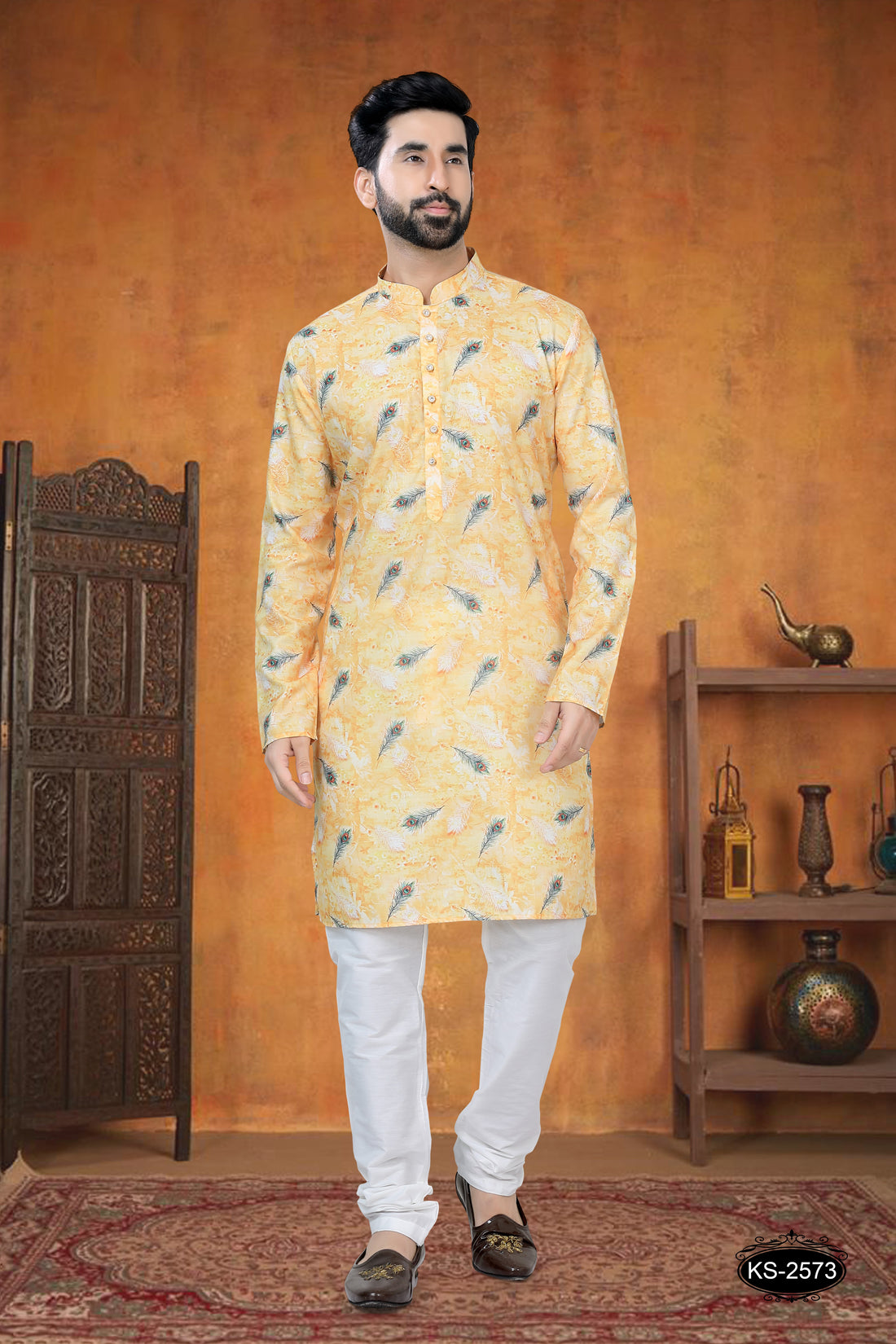 YELLOW KURTA SET WITH SELF-DESIGN