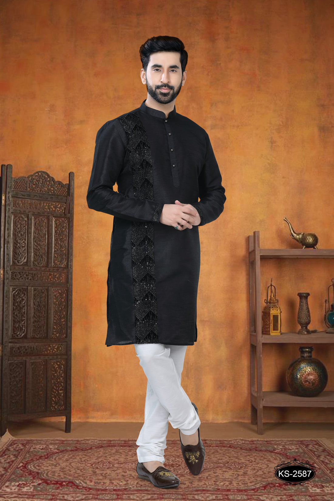 KURTA SET WITH DESIGNER PATTA IN BLACK TONE
