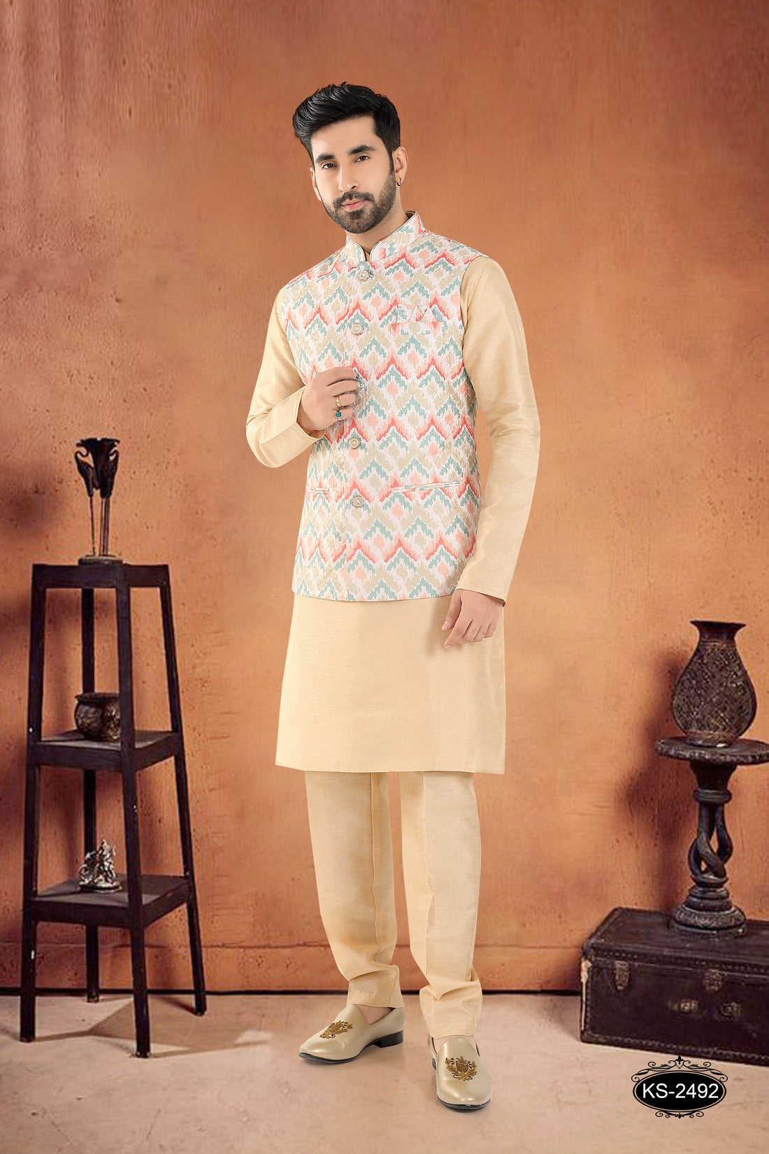 • Kurta Fabric : Silk. • Jacket Fabric : Jacquard. ...