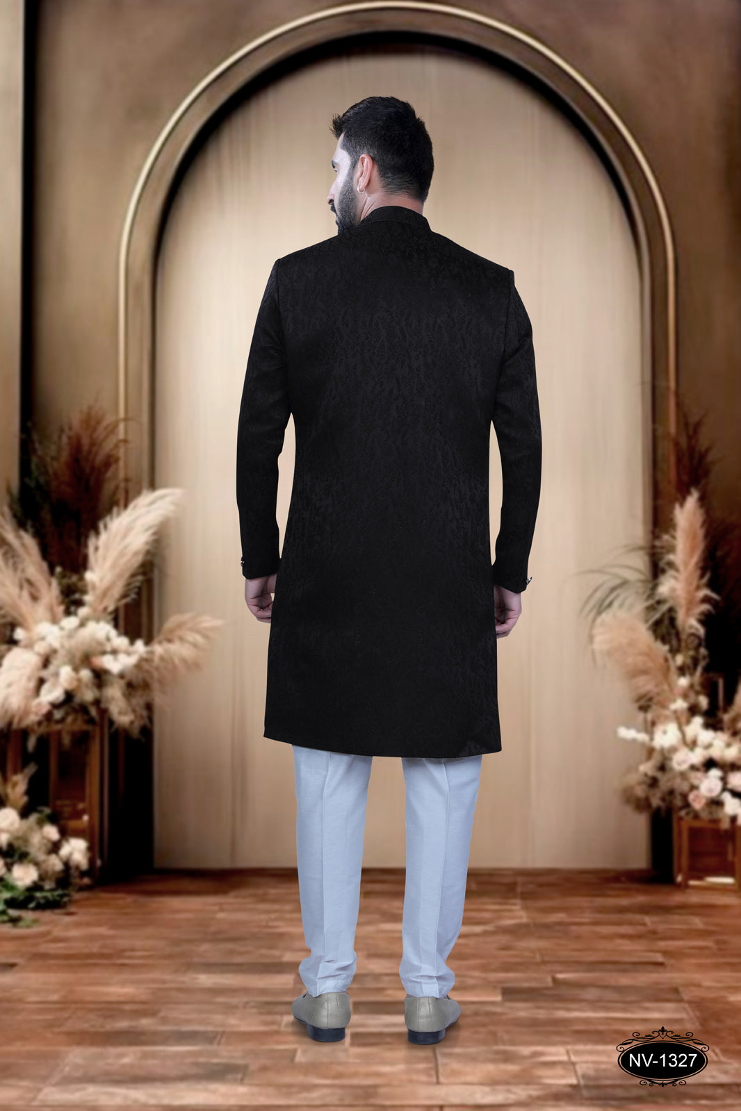 2. The Indo-Western comes with matching Buttons , Chest Pocket and enhance with ornate Broach to add extra charm to the ensemble.