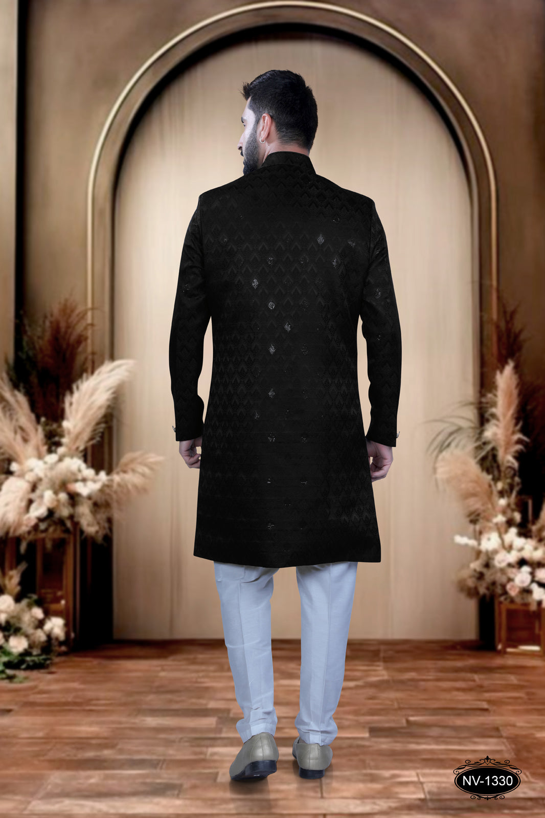 1. Black Tone Indo-Western with Shinny Textured & Self Design all over for rich look.